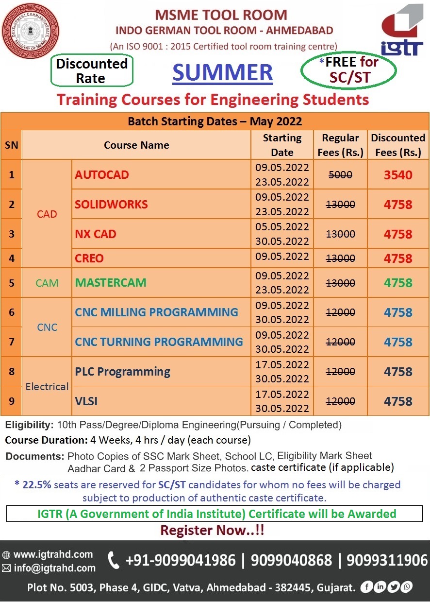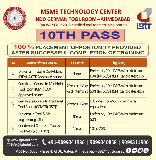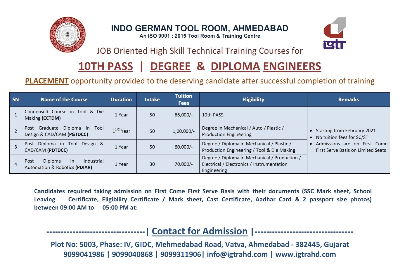 JOB Oriented High Skill Technical Training Courses for 10th Pass, Degree & Diploma Engineers