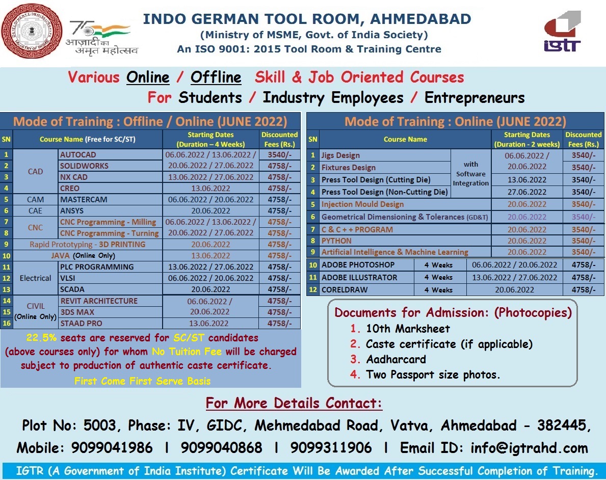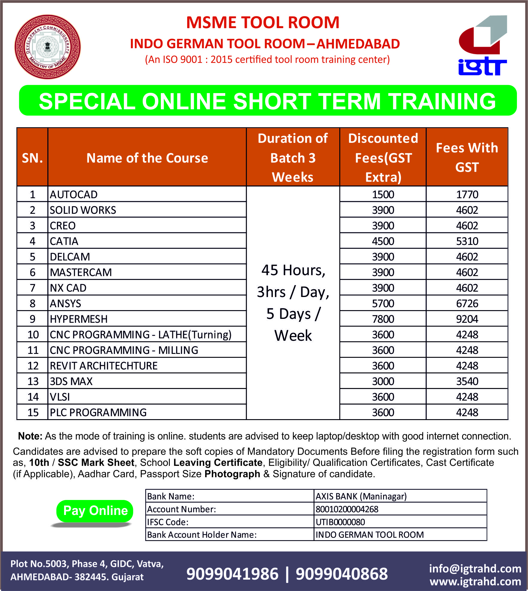Click on the below advertisement and fill up the link of Google form to apply for the courses