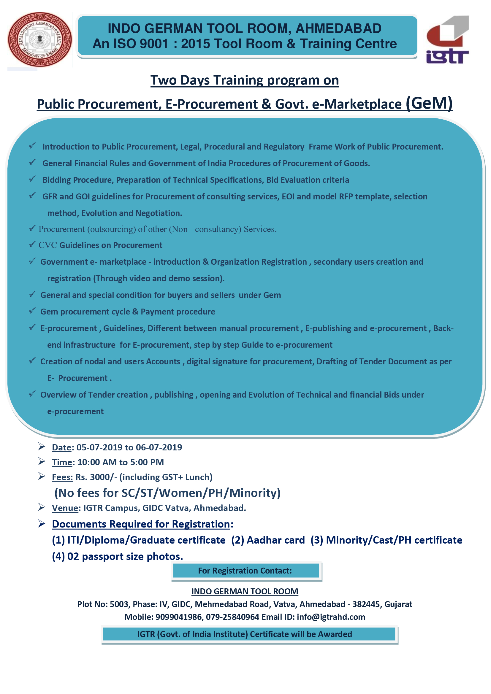 Two Days Training program on Public Procurement, E-Procurement & Govt. e-Marketplace (GeM)