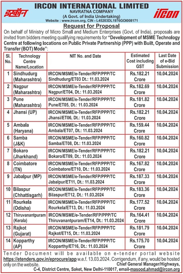 Tender / Gem Bid floated- IGTR Ahmedabad