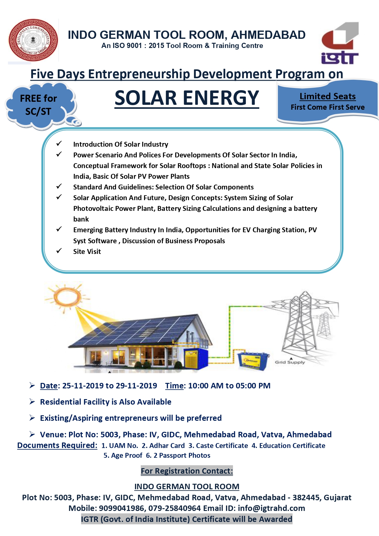 Five Days Entrepreneurship Development Program on "SOLAR ENERGY"