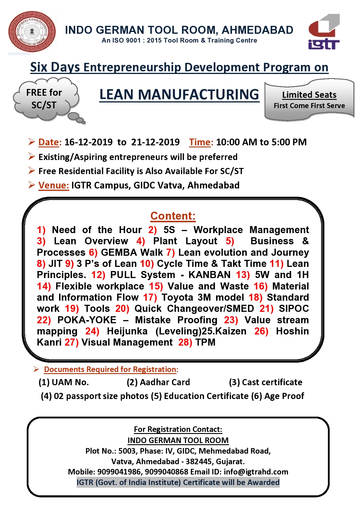 Six Days Entrepreneurship Development Program on "LEAN MANUFACTURING"