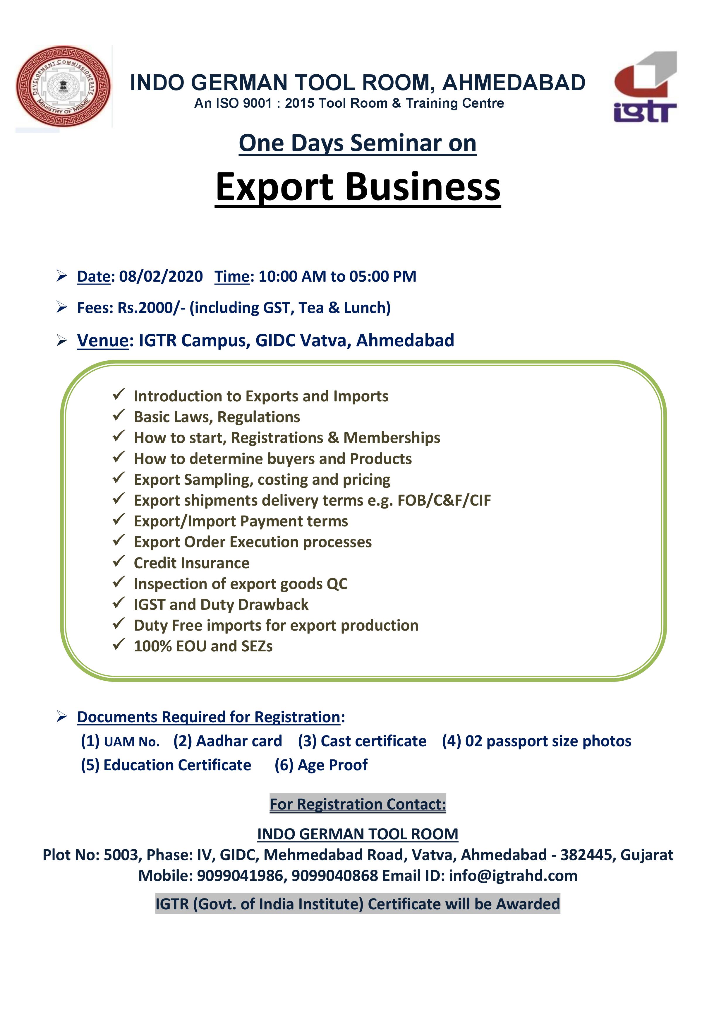 One Week Program on EXPORT-IMPORT-INTERNATIONAL BUSINESS